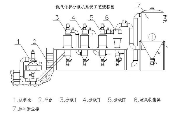 三、AF系列氮氣保護系統氣流分級機流程圖: