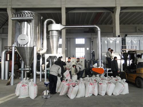 定量喂料系統(tǒng)→粉碎分級(jí)機(jī)→電脈沖除塵收集器→引風(fēng)機(jī)→電器 控制系統(tǒng)