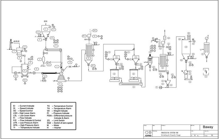 粉體表面改性是利用物理、化學、機械等方法對粉體表面進行處理,根據應用需求有目的改變粉體材料表面物理化學性質,以滿足現代新材料、新工藝和新技術的發展。物料由進料系統進入改性機內,預熱后的改性藥劑經計量泵噴霧加入。進入改性機的物料經均勻打散分散后與霧化的藥劑相互混合,同時利用系統的高溫完成藥劑對粉體的表面包覆改性,成品由后端的負壓收集系統收集。